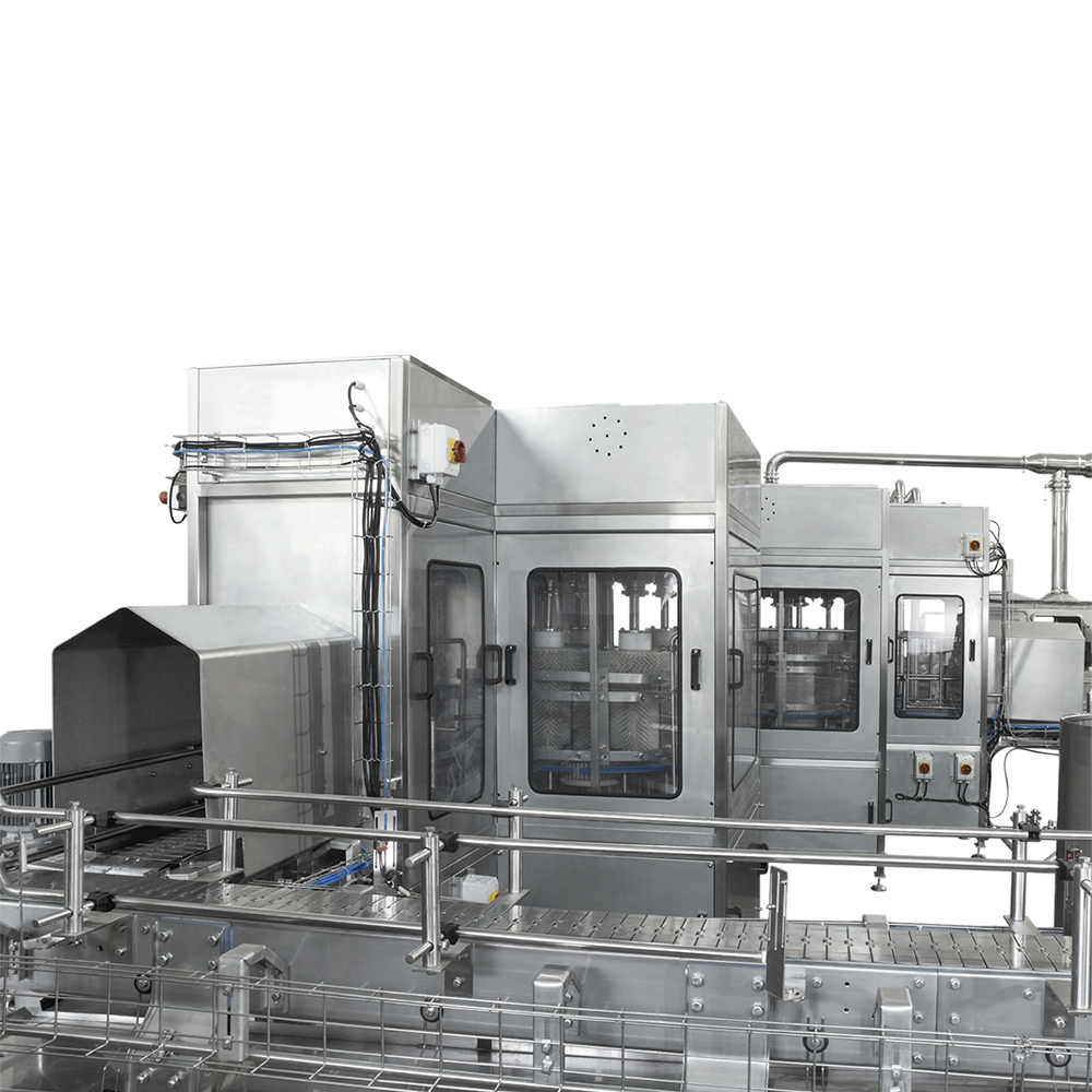 DGER系列旋轉(zhuǎn)外洗機(jī)是以旋轉(zhuǎn)結(jié)構(gòu)為基礎(chǔ)的桶裝水外表面清洗設(shè)備。清洗時(shí),瓶子在外洗機(jī)內(nèi)進(jìn)行公轉(zhuǎn)與自轉(zhuǎn),并通過中心毛刷、邊毛刷與底毛刷所組成的立體洗刷系統(tǒng)對(duì)整個(gè)瓶子外表面進(jìn)行360°全方位洗刷。洗刷后通過網(wǎng)狀噴淋隧道進(jìn)行二次噴淋清洗。通過兩種工藝的清洗徹底洗凈瓶子外壁。